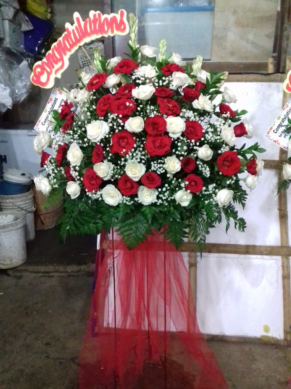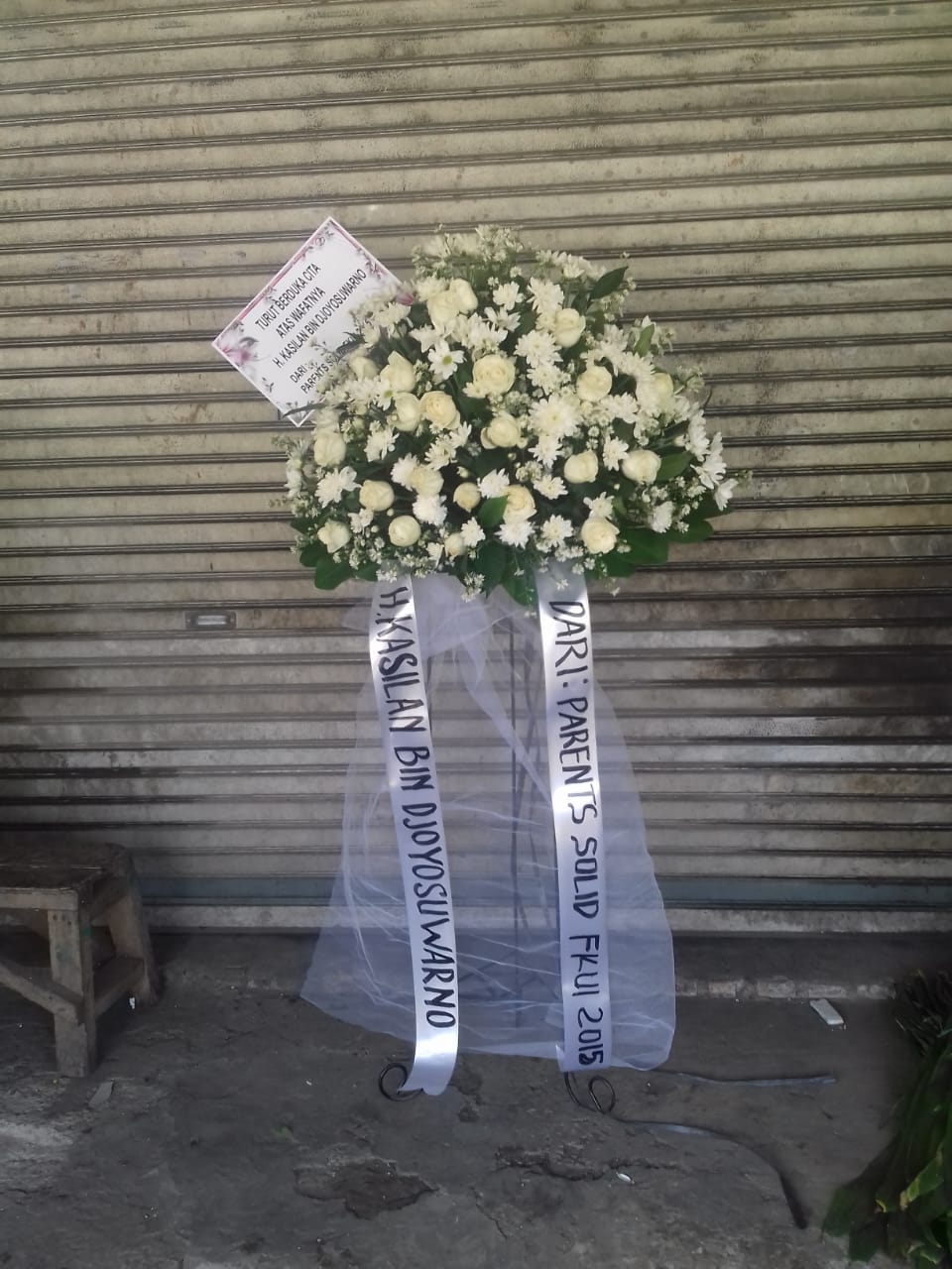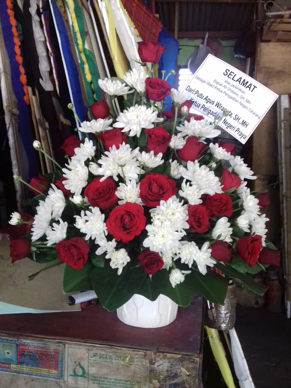 Bunga ucapan berisikan kata kata dukacita, selamat bahagia, semoga sukses, happy wedding, anniversary, graduation, congratulation.