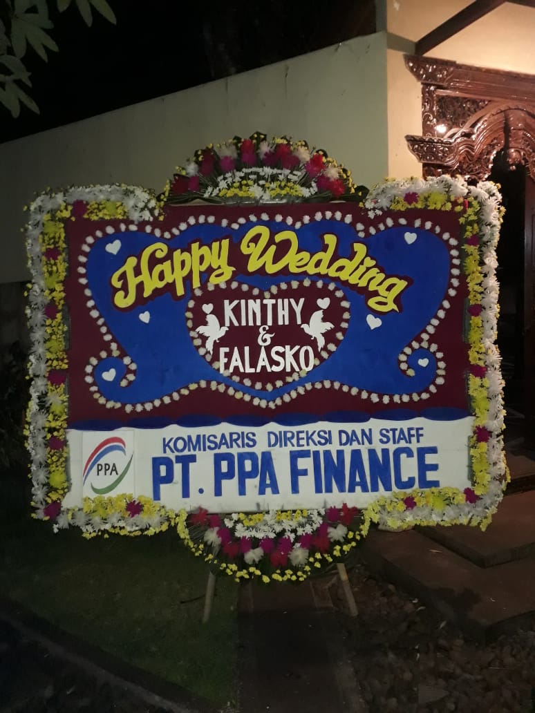 Bunga ucapan berisikan kata kata dukacita, selamat bahagia, semoga sukses, happy wedding, anniversary, graduation, congratulation.
