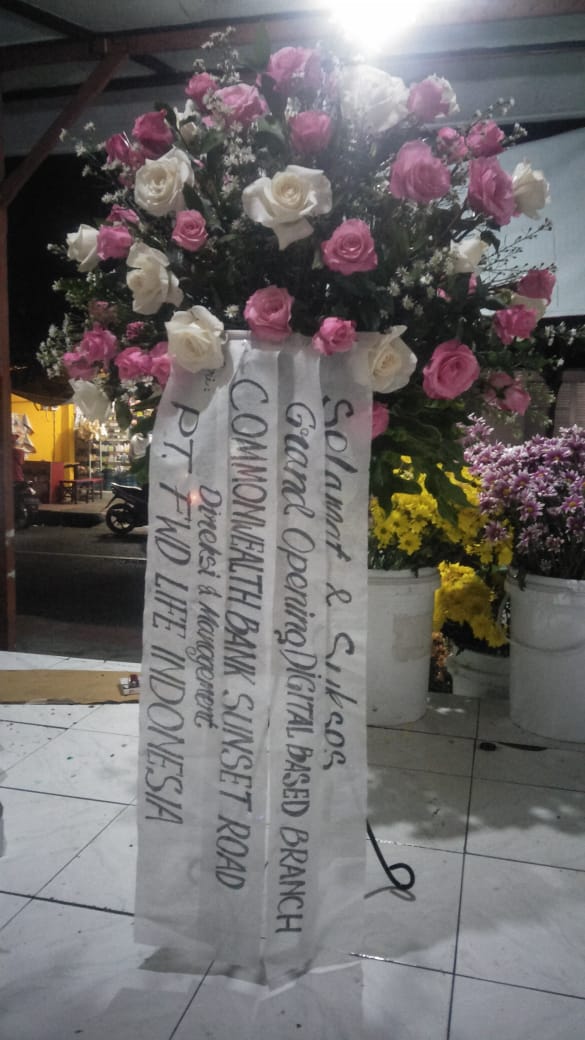 Bunga ucapan berisikan kata kata dukacita, selamat bahagia, semoga sukses, happy wedding, anniversary, graduation, congratulation.