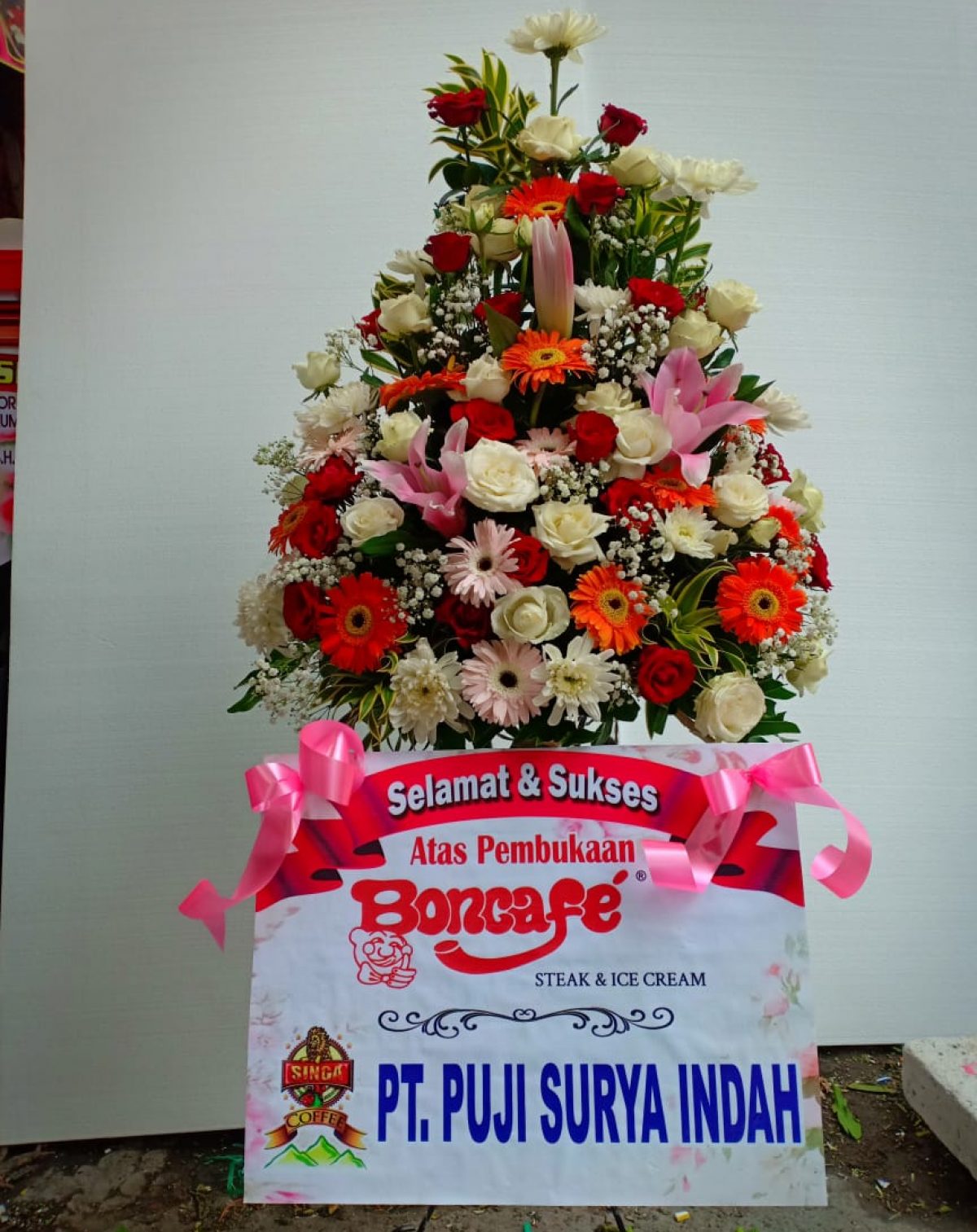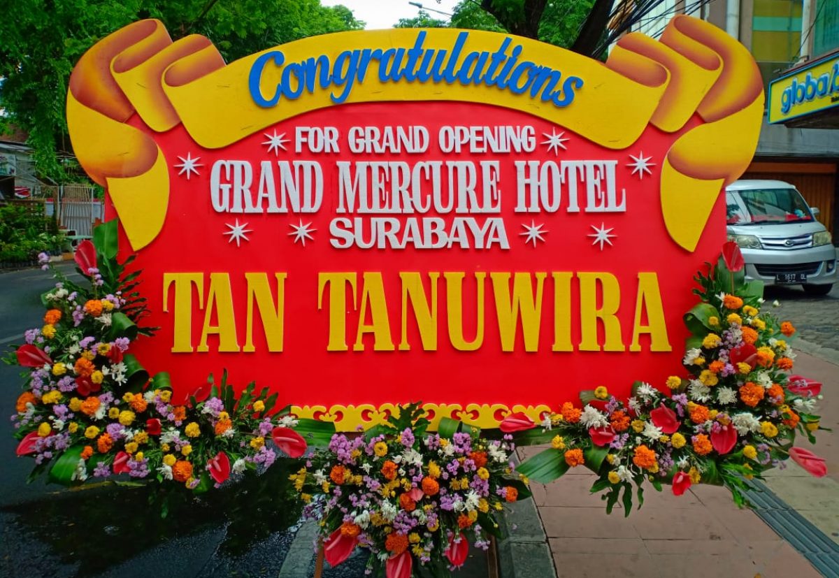 Bunga ucapan berisikan kata kata dukacita, selamat bahagia, semoga sukses, happy wedding, anniversary, graduation, congratulation.