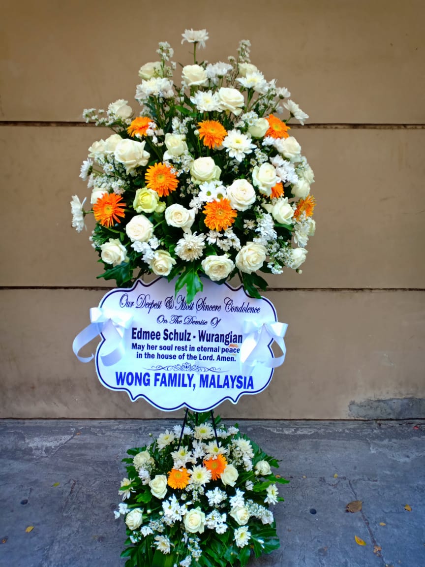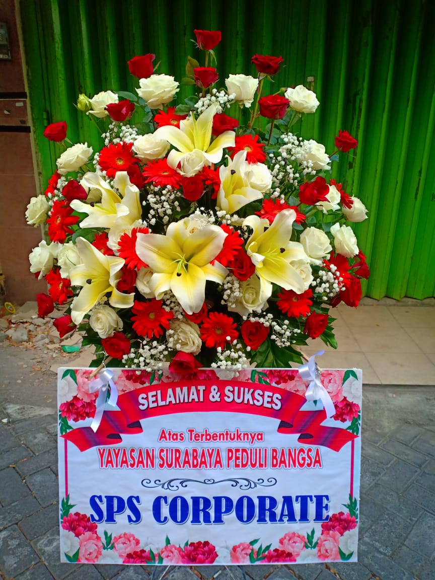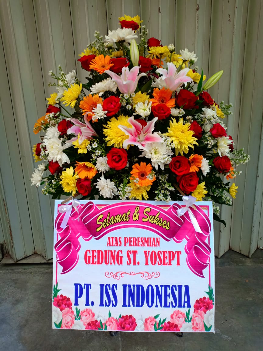 Bunga ucapan berisikan kata kata dukacita, selamat bahagia, semoga sukses, happy wedding, anniversary, graduation, congratulation.